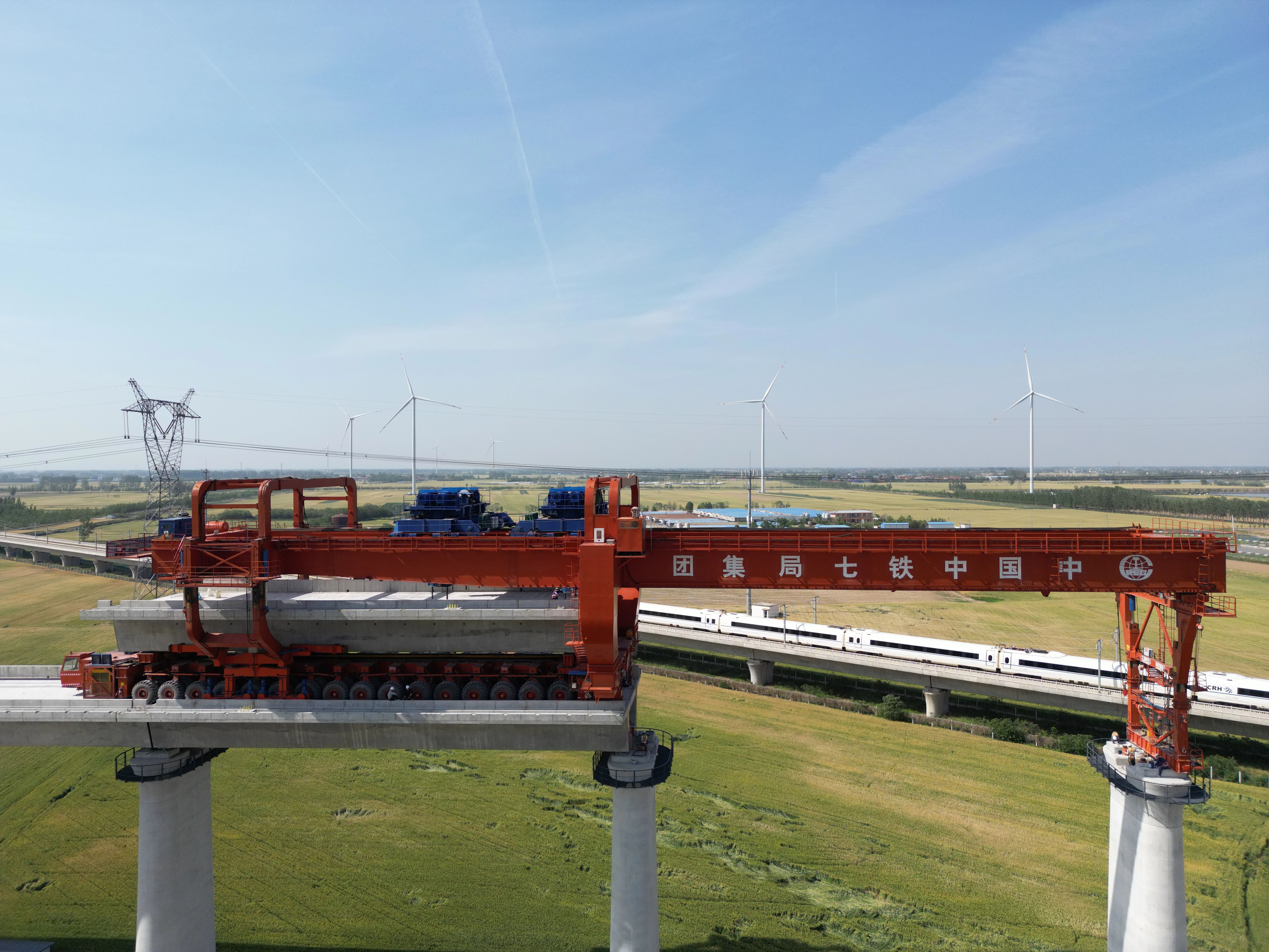 “旁邊就是鄭阜高鐵,為了保證施工中高鐵正常運(yùn)行,我們先在支架模板中建好橋墩和連續(xù)梁,再通過(guò)大橋轉(zhuǎn)體的方式,讓平漯周高鐵從它上方一‘跨’而過(guò)。”王文科說(shuō)話間,一列高鐵裹挾著熱風(fēng)疾馳遠(yuǎn)去。