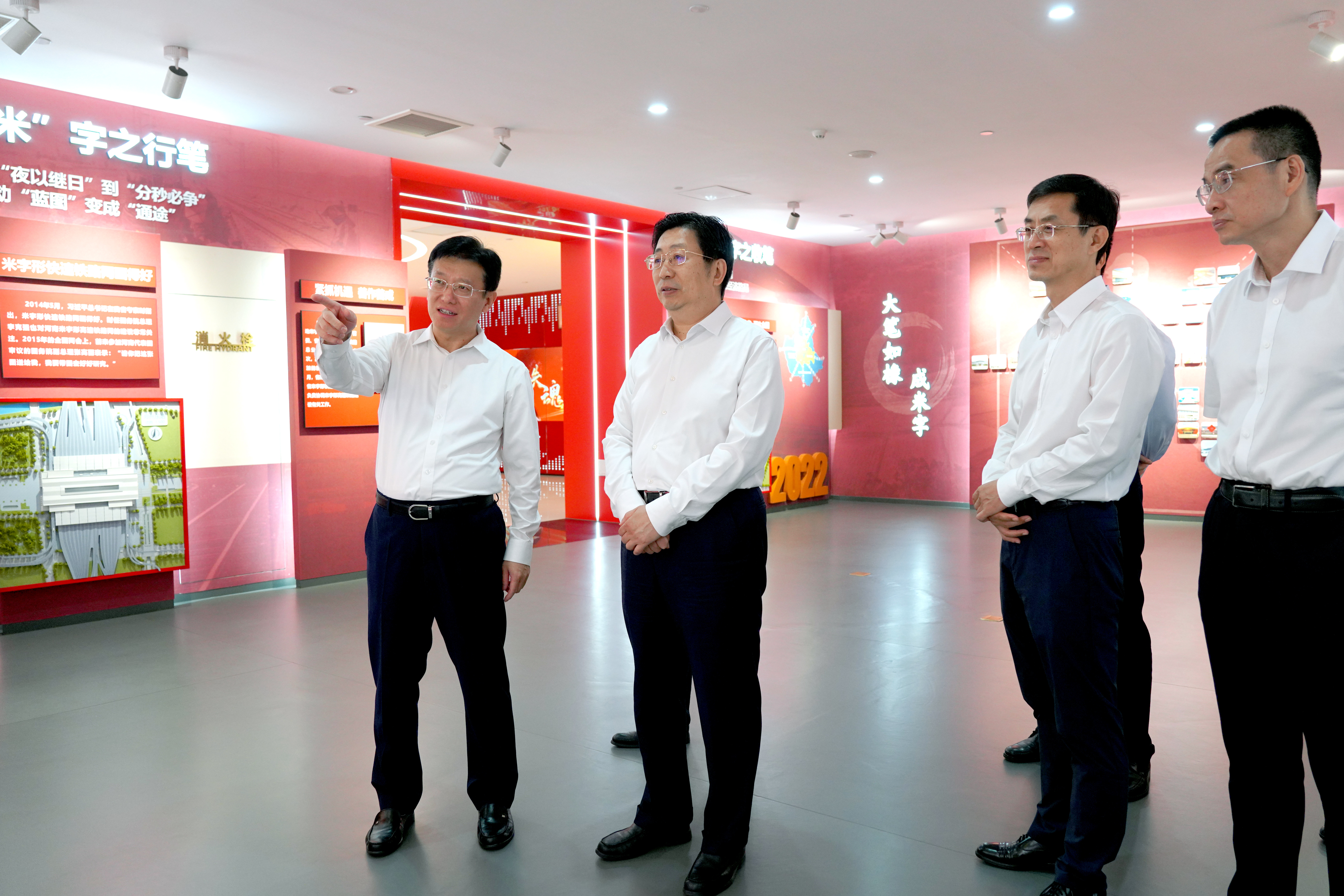 調(diào)研期間,譚炯一行實地考察了河南鐵路網(wǎng)沙盤,參觀了河南鐵路展覽館。系統(tǒng)了解了河南在全國率先建成米字形高鐵網(wǎng)的建設(shè)歷程,及其從戰(zhàn)略、經(jīng)濟、社會、區(qū)位、區(qū)域、開放、生態(tài)等多維度賦能河南高質(zhì)量發(fā)展的顯著成效,并深入了解雄商高鐵河南段、平漯周高鐵、焦洛平高鐵、南信合高鐵等重點項目推進情況。